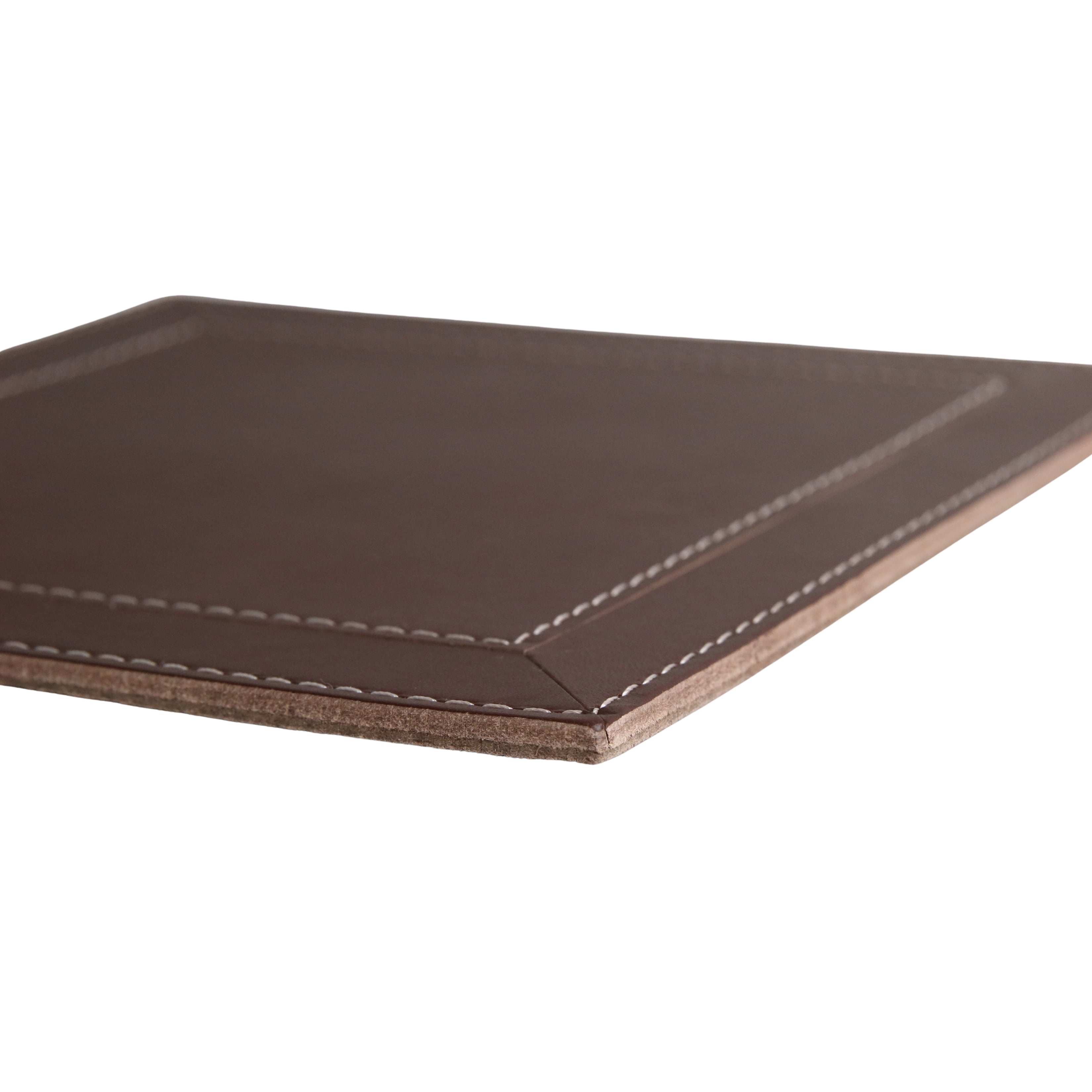 トスカーナ産ベジタブルタンニンレザーを使用した、正方形フォルムの高級マウスパッド。白いステッチが際立つシンプルかつ洗練された一枚。職人技が光る四方の継ぎ目が美しく、空間に静かな存在感を添えます。